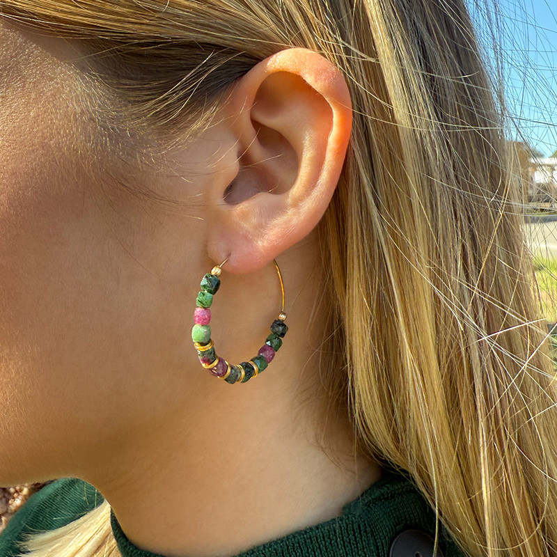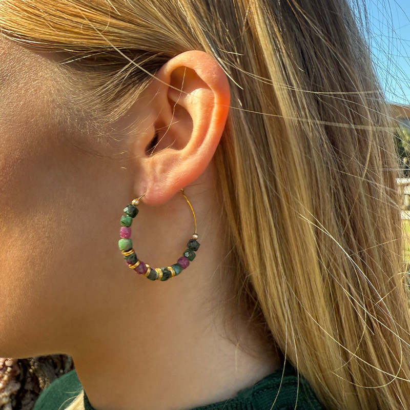 Créoles dorée Rubis-Zoisite ou Turquoise, création originale la Petite Tribu.