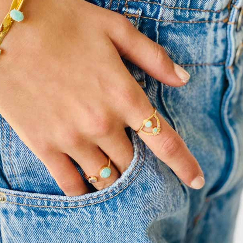 Bague Dorée Pierre Amazonite