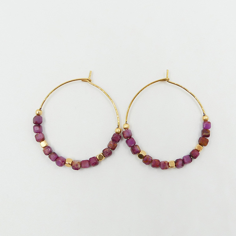 Créoles diamètre 30 mm avec pierres fines naturelles.
