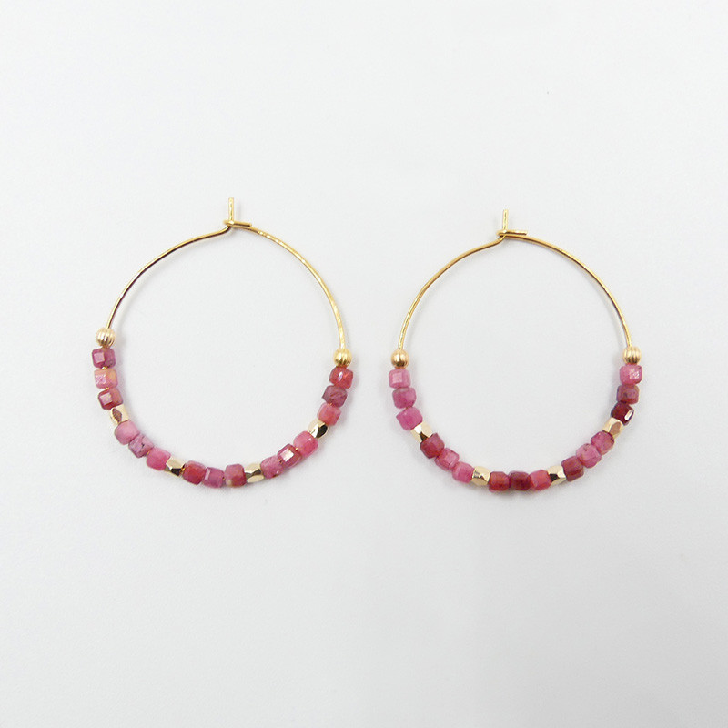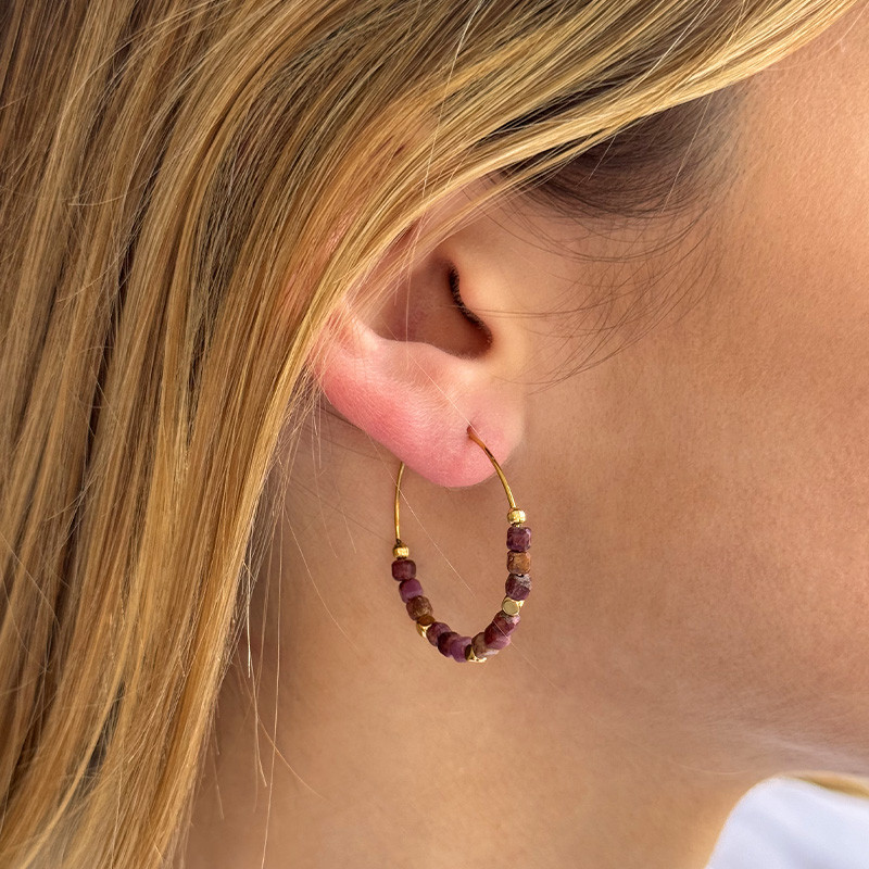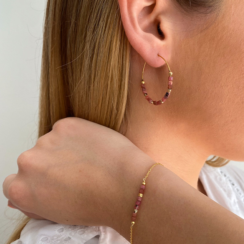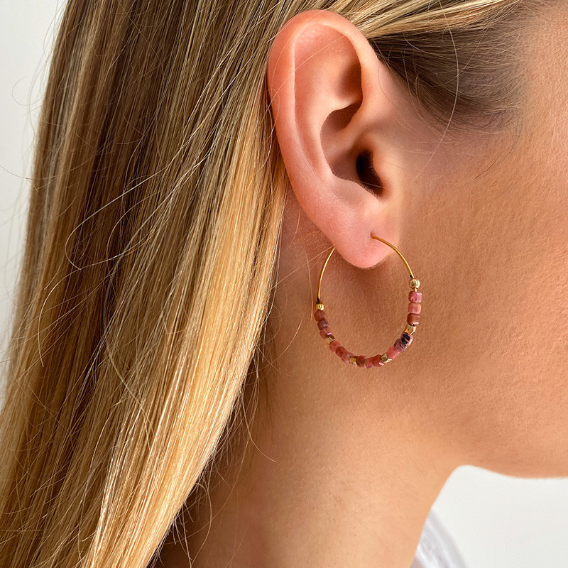 Créoles dorée en Rhodochrosite ou en Phosphodorite, création originale la Petite Tribu.
