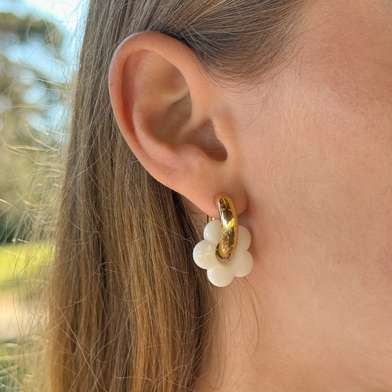 Petites créoles épaisses en acier inoxydable doré ornée d'une fleur colorée