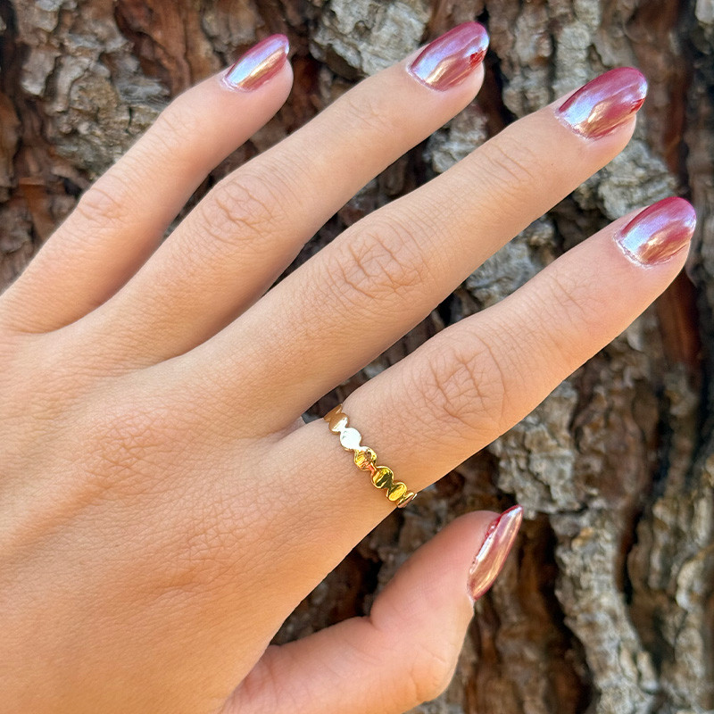 Ajoutez une touche de raffinement à votre collection avec cette bague dorée 2 microns à fine pastilles, un bijou délicat et moderne.