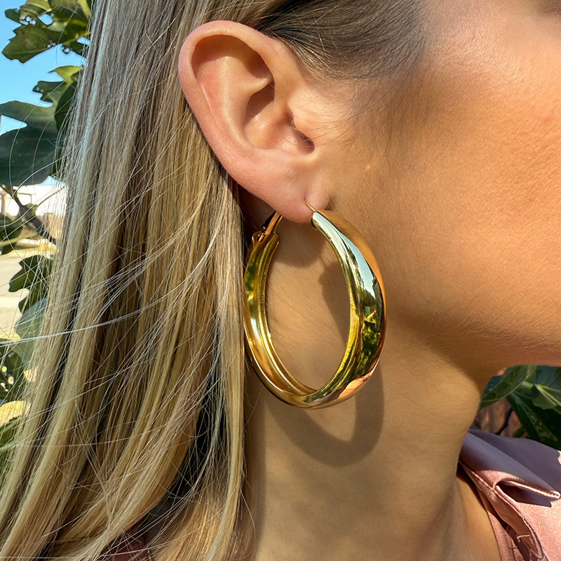 Intemporelles et lumineuses, ces créoles épaisses en acier inoxydable doré