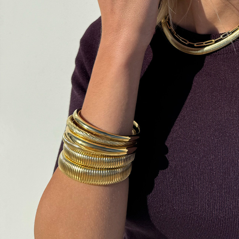 Ce bracelet jonc doré minimaliste se porte aussi bien seul que superposé à d’autres bracelets fins ou joncs plus larges, pour un effet stacking tendance.