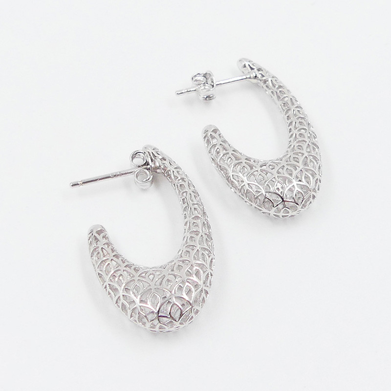 Ces créoles en argent se distinguent par leur design ajouré, qui crée un effet léger et raffiné.