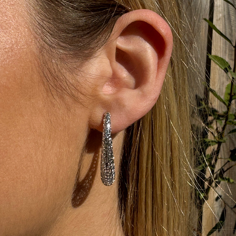 Polyvalentes, ces boucles d’oreilles complètent parfaitement un look minimaliste ou peuvent être combinées avec d’autres bijoux en argent pour un style plus affirmé.